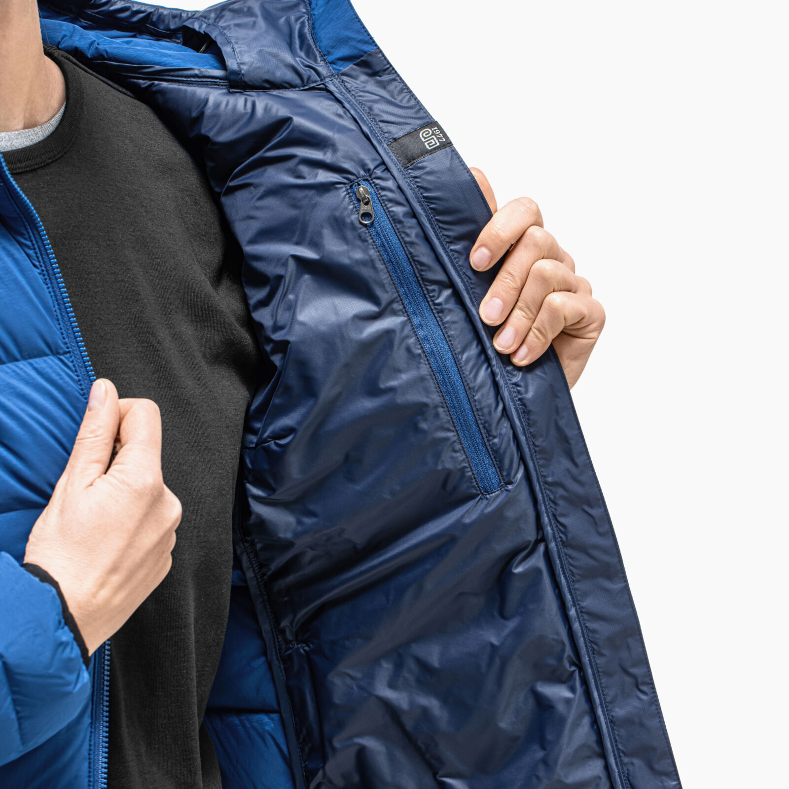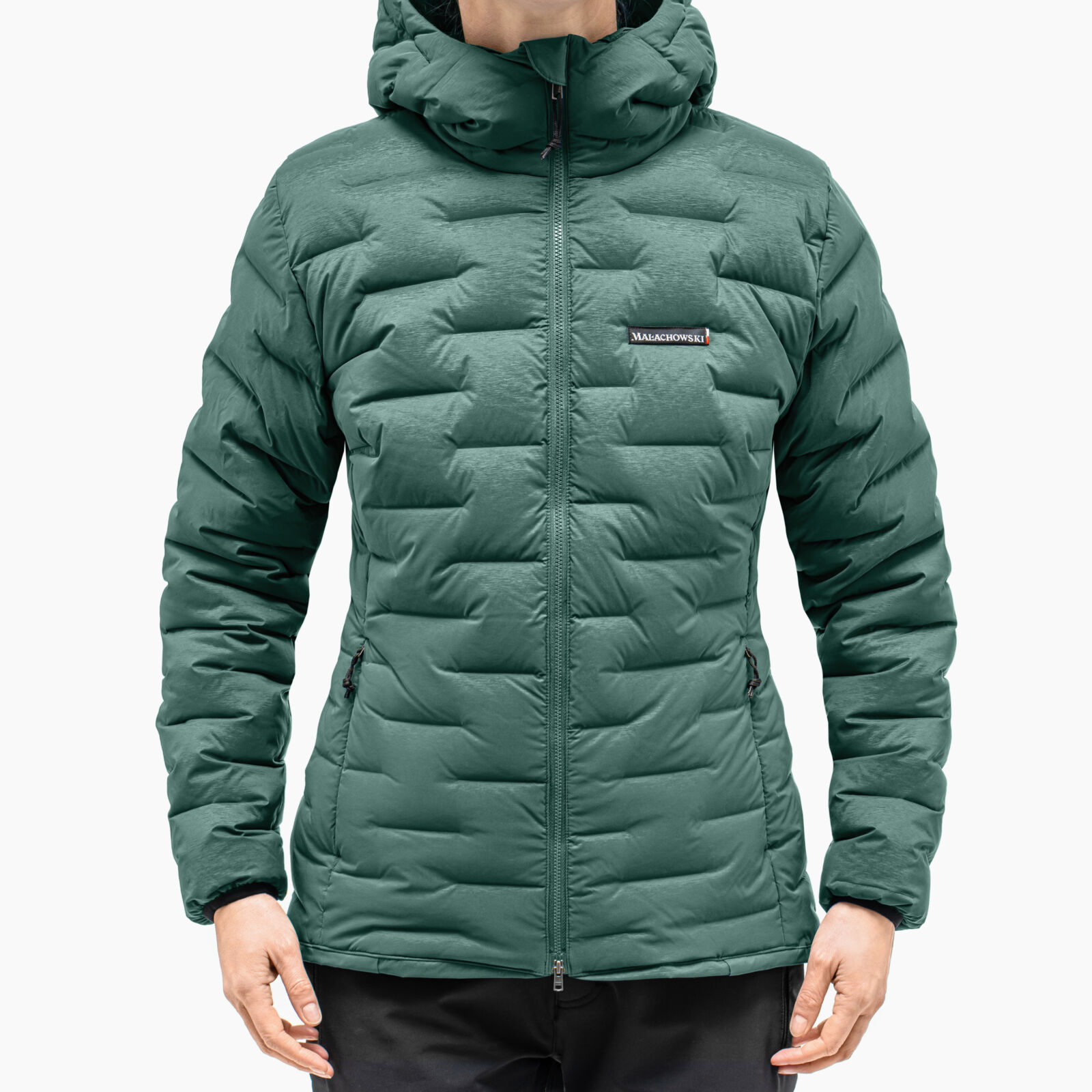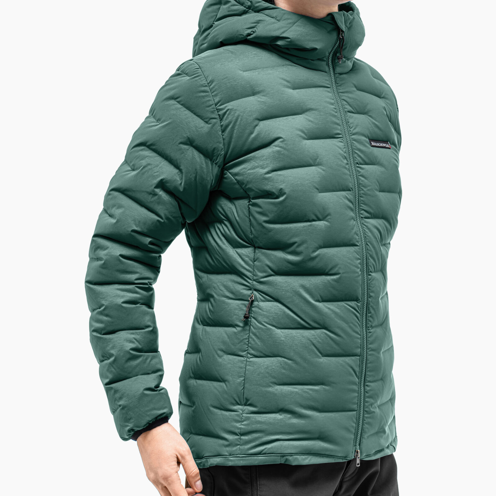 In the ICON TOURIST model, we have used an innovative i-Tube material from the Japanese company Toray, where the down chambers are formed during the fabric weaving process. This solution provides higher down retention compared to traditionally stitched models. Additionally, the material has been coated with a hydrophobic DWR layer, which allows the jacket to absorb moisture more slowly and makes it resistant to light rain. We have paid attention to details, such as the hood adjustment, where the elastic bands are hidden in a special “pocket” in the collar, making them not noticeable even when tightly pulled. The bottom part of the jacket can be easily adjusted in the pockets, which is particularly useful on very cold days when we have multiple layers of clothing on.