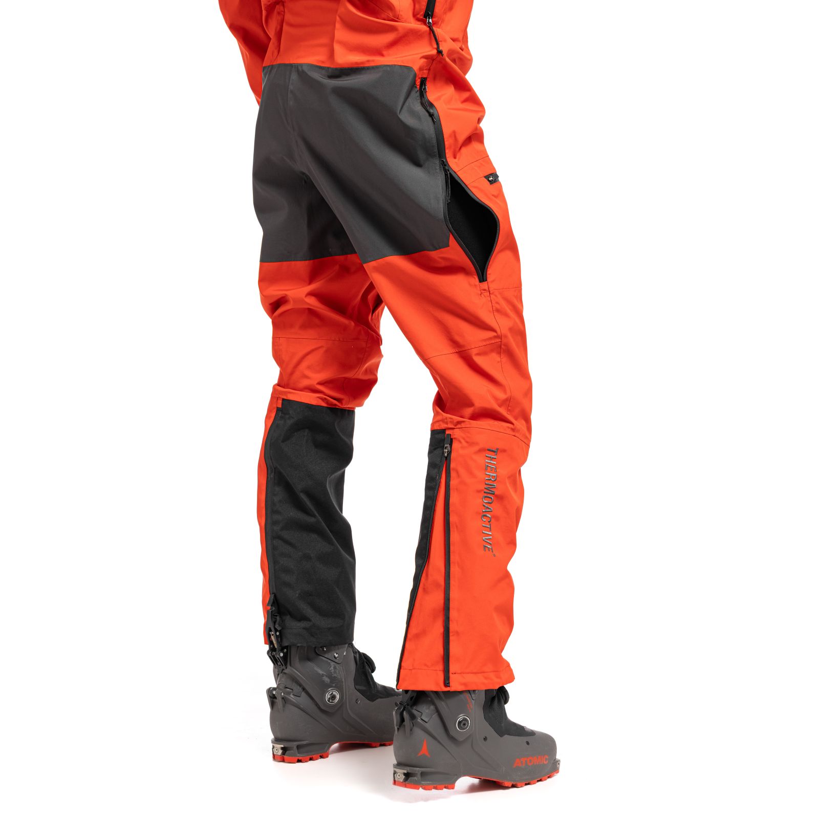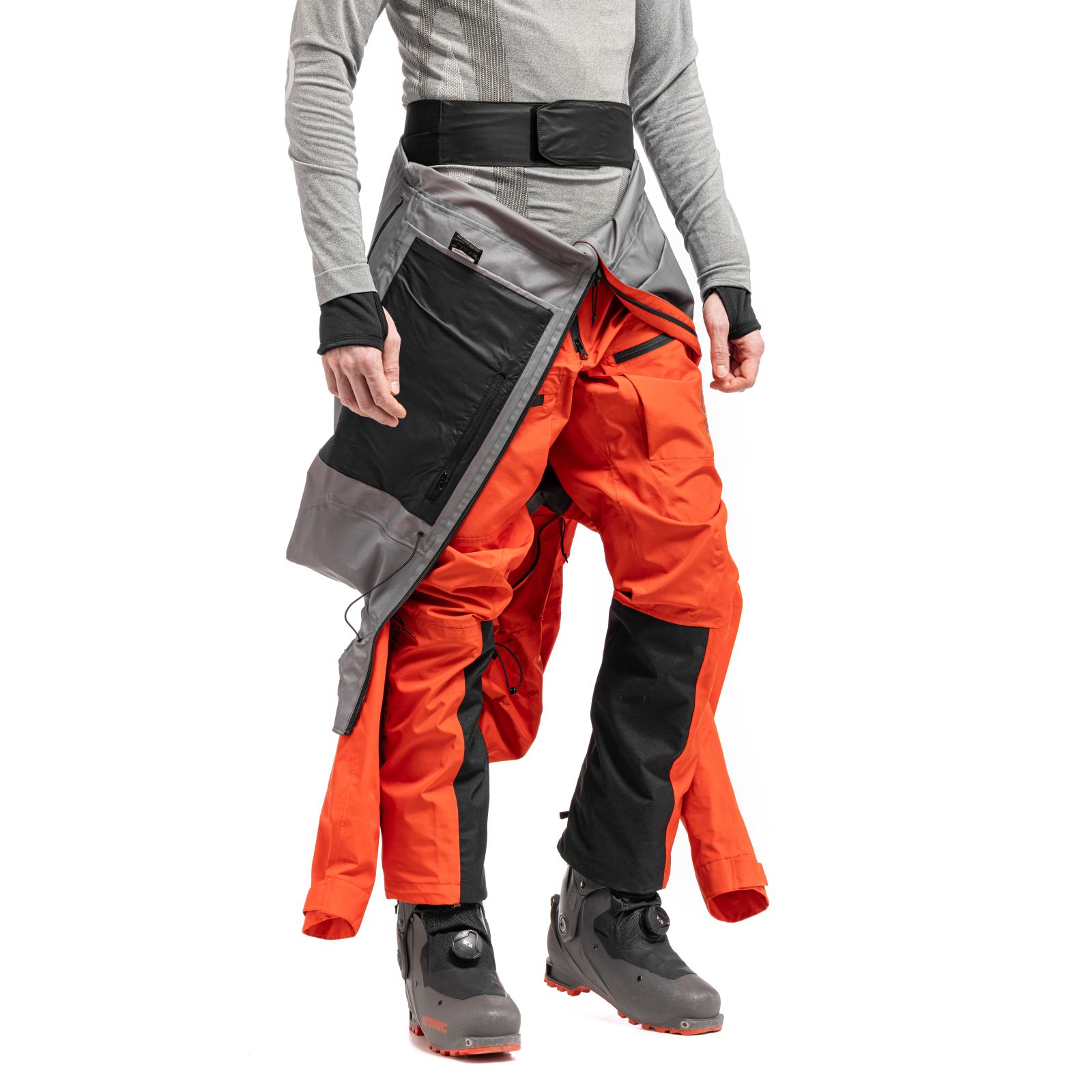 • Ochrona i Funkcjonalność: Zintegrowane wewnętrzne rękawy z elastycznej dzianiny oraz wewnętrzne nogawki przeciwśnieżne (z metalowym haczykiem do mocowania o sznurówki) tworzą szczelną barierę dla wiatru i śniegu. Dodatkowo nogawka posiada zamek błyskawiczny do regulacji szerokości oraz poszerzający klin.