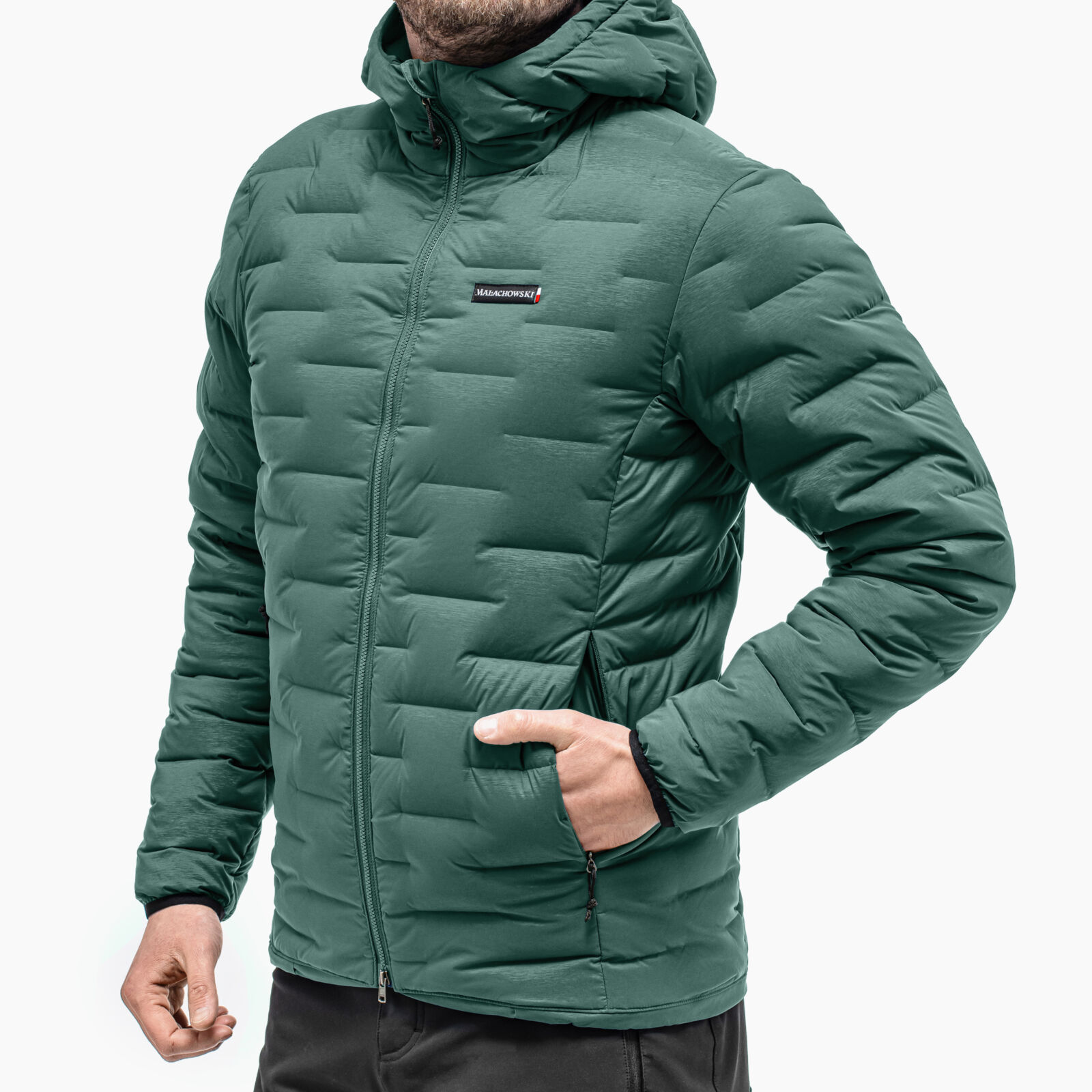 W modelu ICON TOURIST zastosowano nowatorski materiał i-Tube japońskiej firmy Toray, w którym komory puchowe powstają już na etapie tkania tkaniny. Rozwiązanie to cechuje się wyższą puchoszczeność niż w modelach tradycyjnie szytych. Ponadto materiał został powleczony hydrofobową warstwą DWR, która sprawi, że kurtka wolniej wchłania wilgoć i drobny deszcz nie jest jej straszny. Przy tworzeniu zadbano o szczegóły, takie jak regulacja kaptura, gdzie gumki ukryto w specjalnej „kieszonce” w stójce, przez co nawet przy mocnym zaciągnięciu nie są odczuwalne. Regulacji dolnej części kurtki możemy dokonać w bardzo wygodny sposób w kieszeniach, co jest przydatne zwłaszcza w bardzo chłodne dni, gdy mamy więcej warstw odzieży na sobie.
