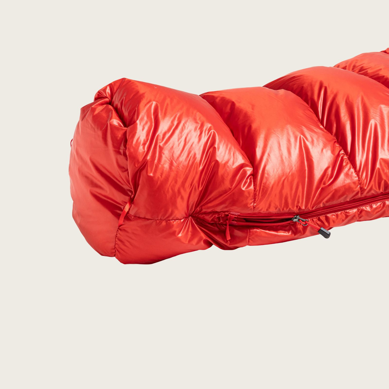 Śpiwór puchowy Tourist 250 to dobry wybór na letni biwak i kemping, lekki i mały po spakowaniu. Dobrze się sprawdza gdy chcemy odchudzić nasz sprzęt i zrezygnować ze śpiwora syntetycznego. Wykonaliśmy go z trwałego materiału Airtastic™ 32g/m2 z japońskiej firmy TORAY, który posiada hydrofobową powłokę DWR. Śpiwór w kształcie mumii, z komorami o przekroju X (DSX) szytymi na przestrzał. Wypełniliśmy go polskim puchem kaczym o sprężystości 750 cuin, 90/10. Śpiwór Tourist ma szeroki i komfortowy krój. Przy zamkach zastosowaliśmy specjalne listwy, sprawiające, że podczas zamykania materiał się nie wcina, a zamek jest dodatkowo izolowany.